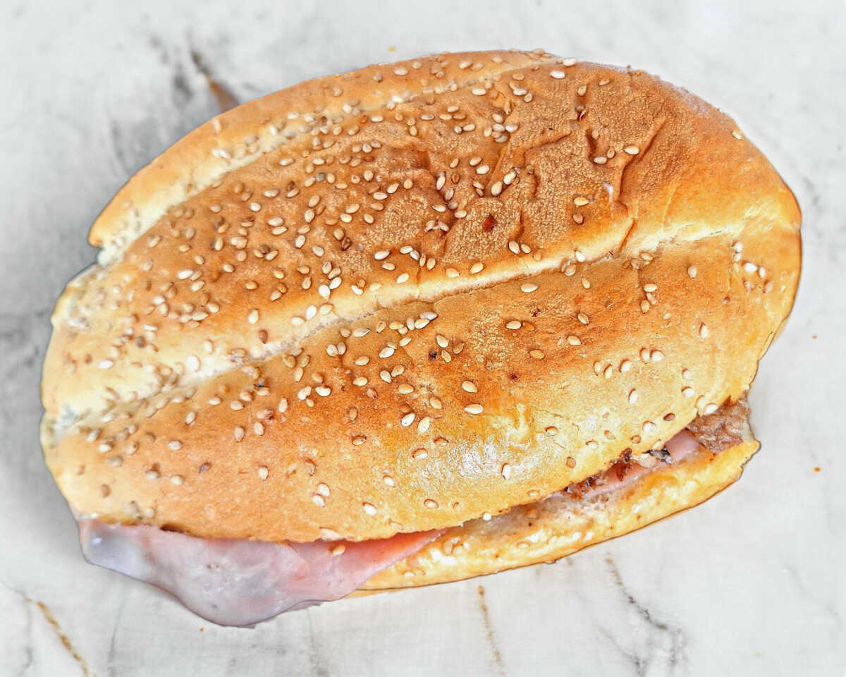 deliciosa torta de pan extra grande con cubierta de ajonjolí tostado, mayonesa, frijoles, queso blanco, pierna, salchicha y manchego acompañado con verduras selectas: jitomate, cebolla, chiles en vinagre y aguacate.
