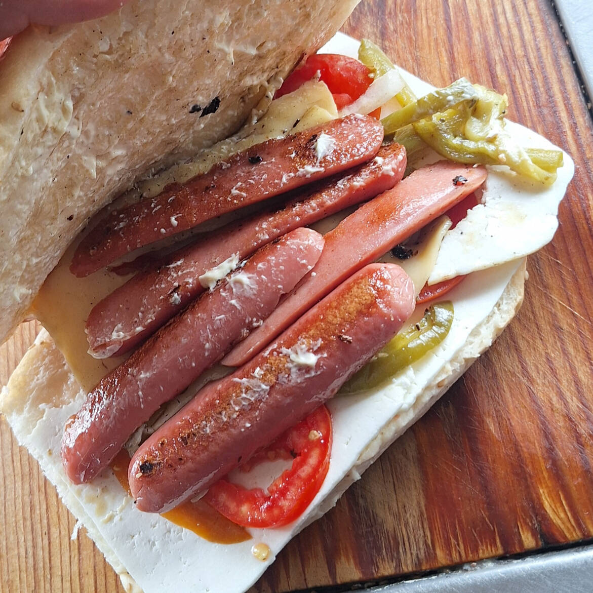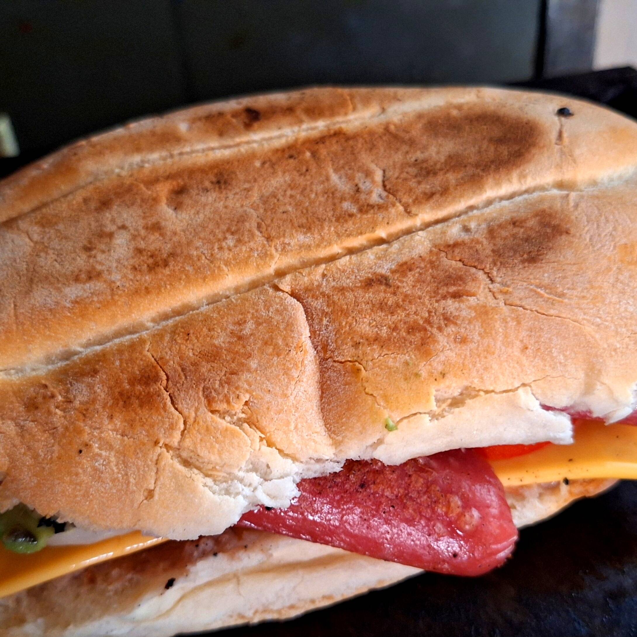 telera chica con mayonesa, frijoles, salchicha y queso blanco o amarillo acompañada de jitomate, cebolla chiles en vinagre y aguacate.