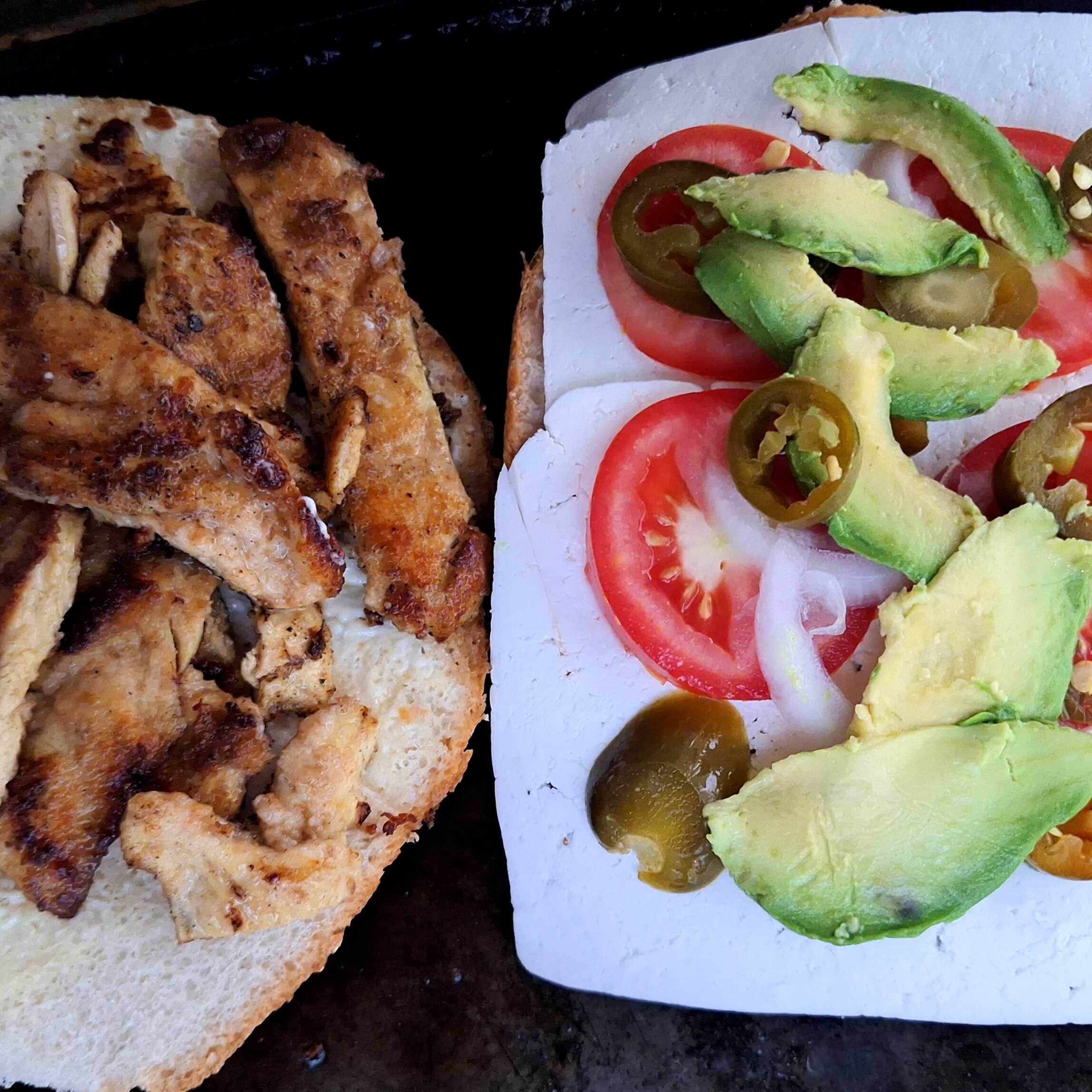 deliciosa torta de pan extra grande con cubierta de ajonjolí tostado, mayonesa, frijoles, longaniza, huevo y queso blanco acompañado con verduras selectas: jitomate, cebolla, chiles en vinagre y aguacate.