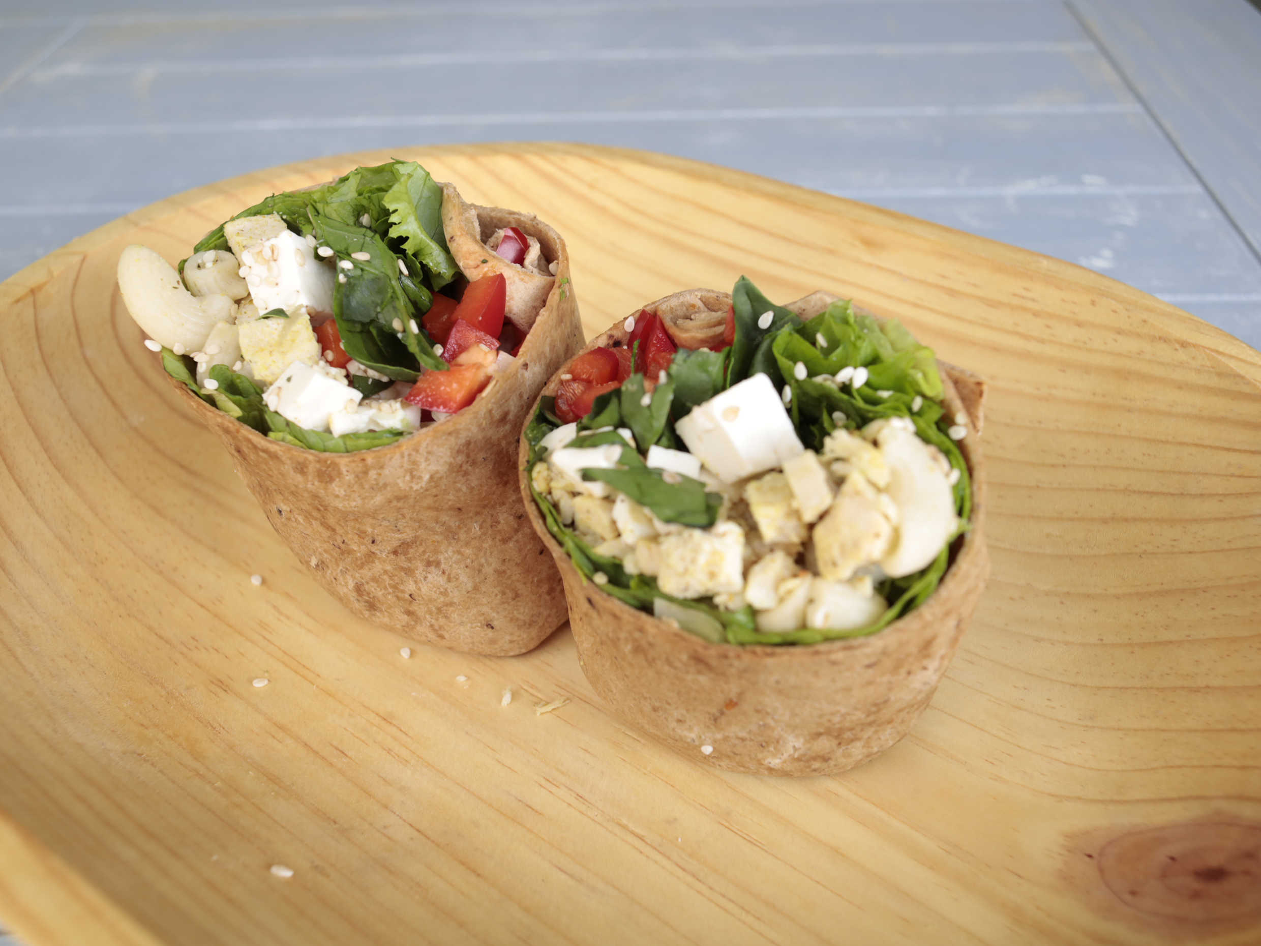 La ensalada incluye lechuga, ingredientes A y B, complementos, semillas y aderezos