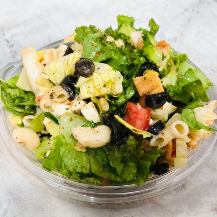 Ensalada Mediana de 48 onzas contiene Lechuga, pasta, complementos( tortillas, arándanos entre otros ), semillas (2) y aderezos (1)