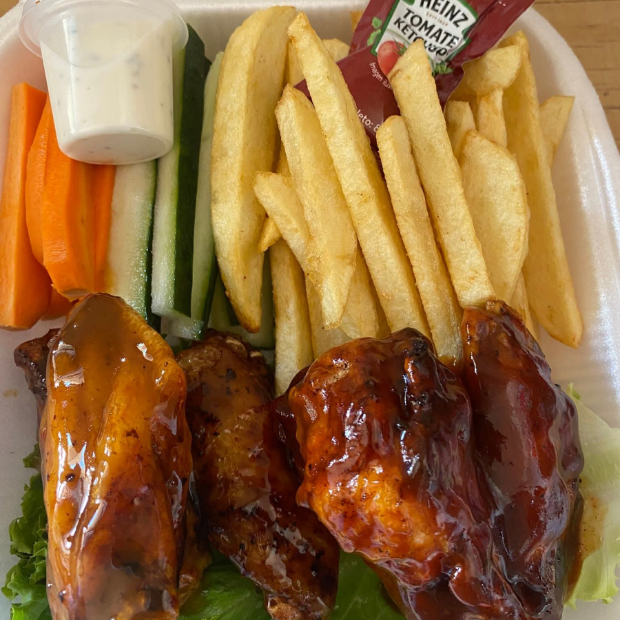 Alitas BBQ orden de 6 con papas
