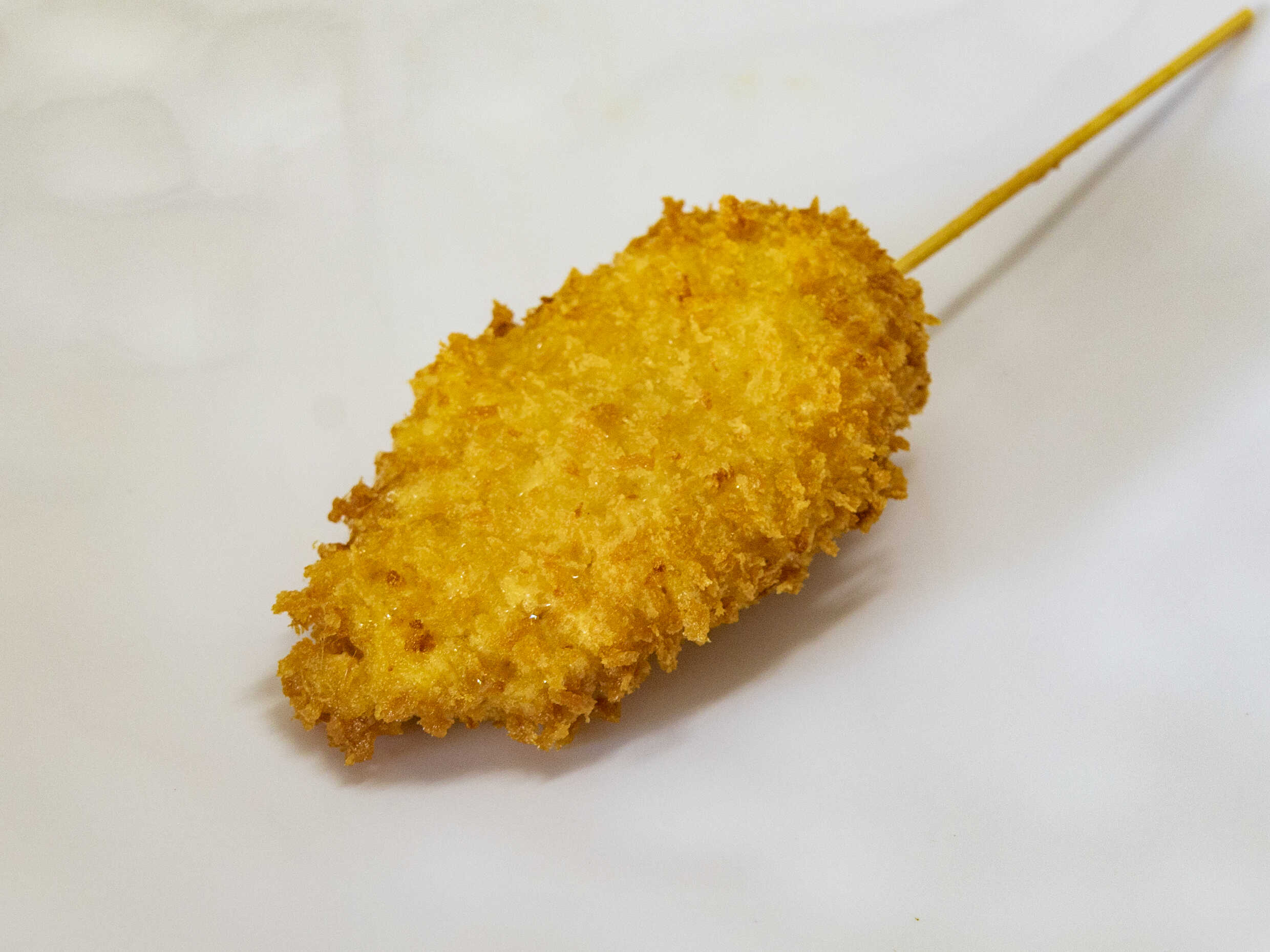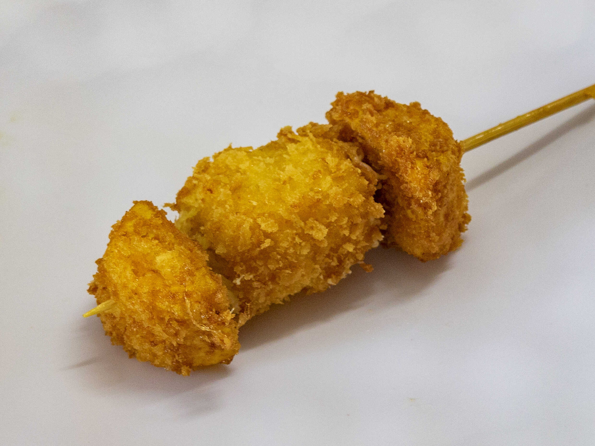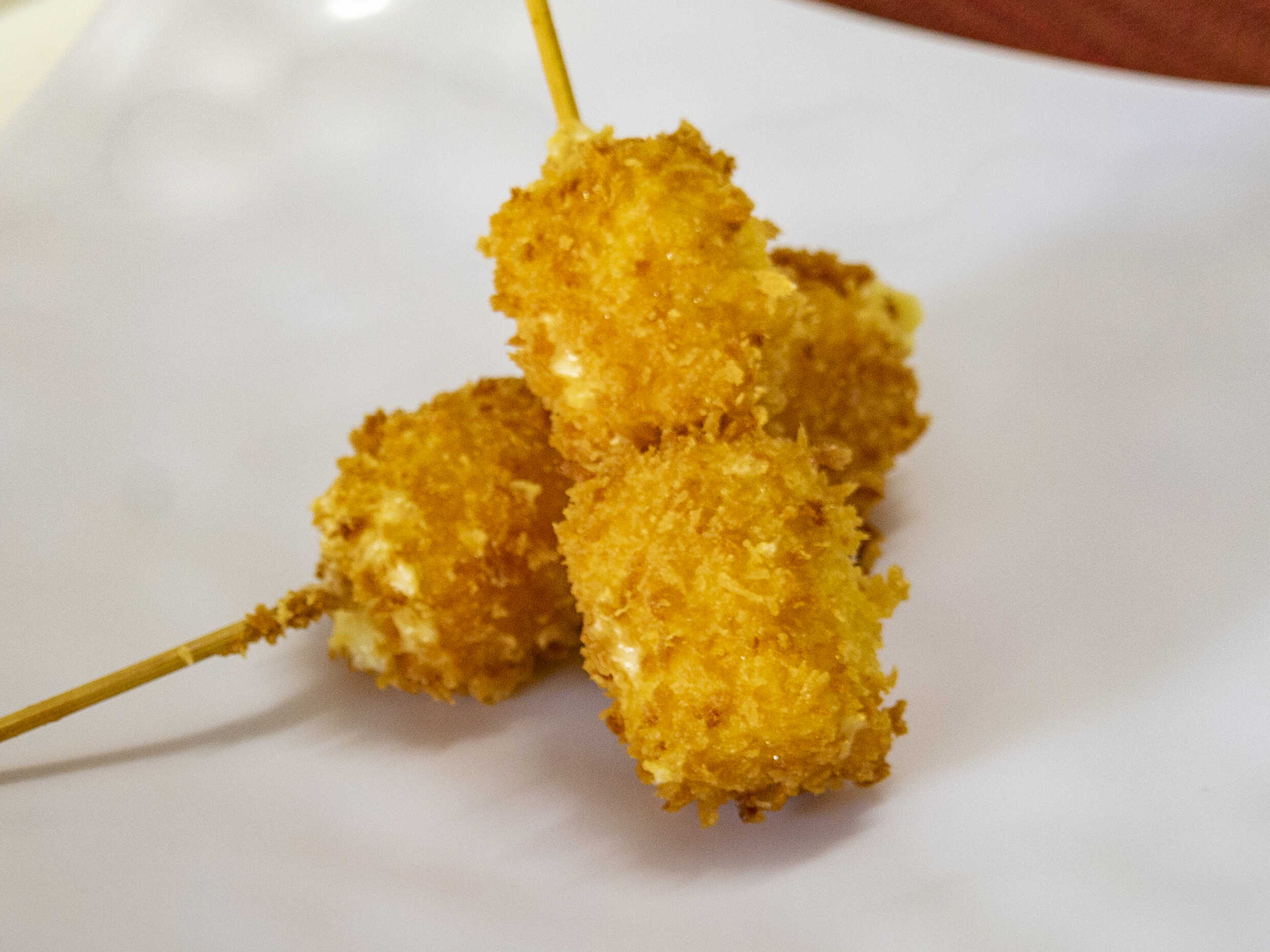 Brocheta de queso gouda empanizada. 1 Pieza.