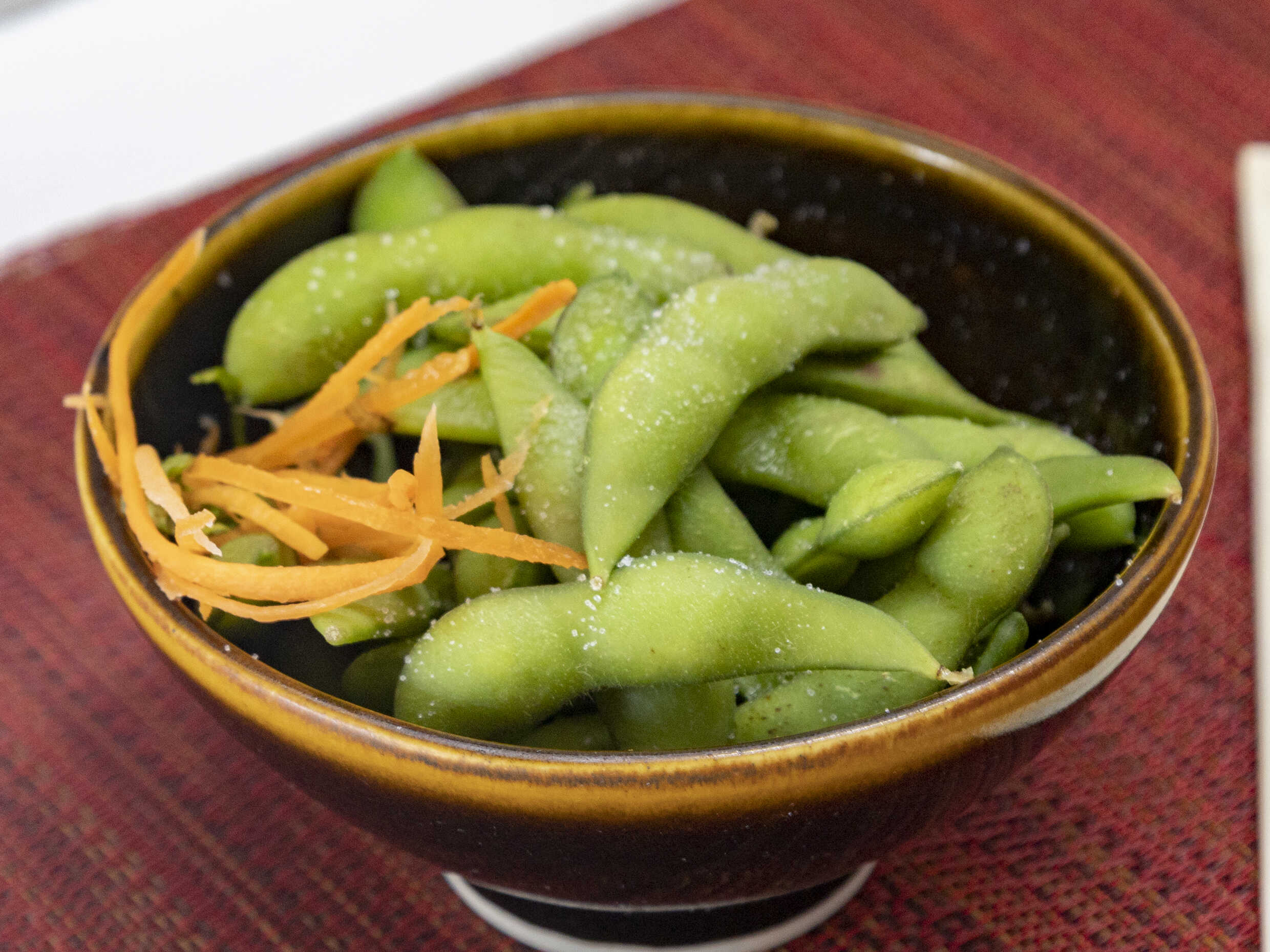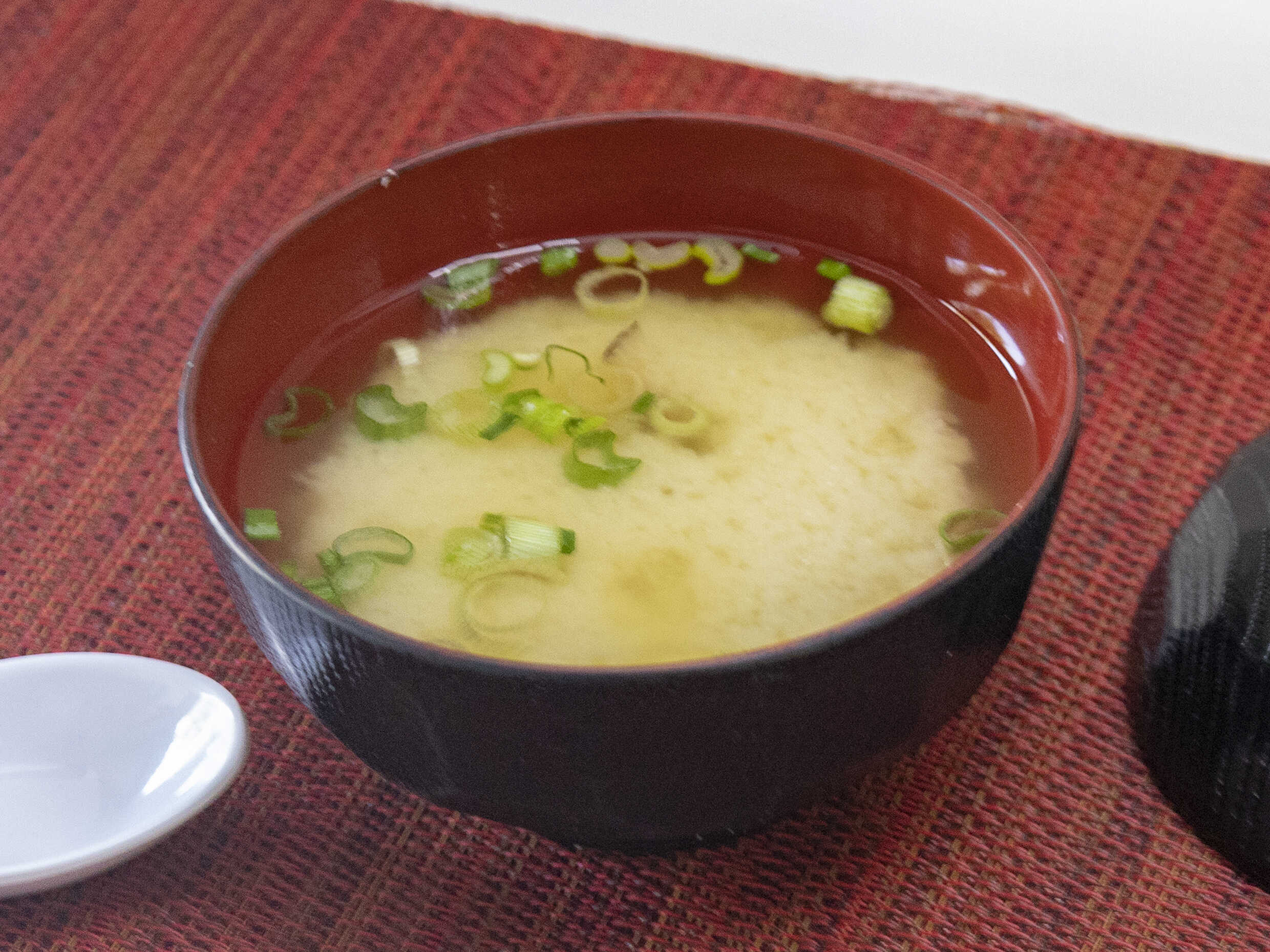 Sopa tradicional de frijol de soya con tofu, shitake y cebollín.