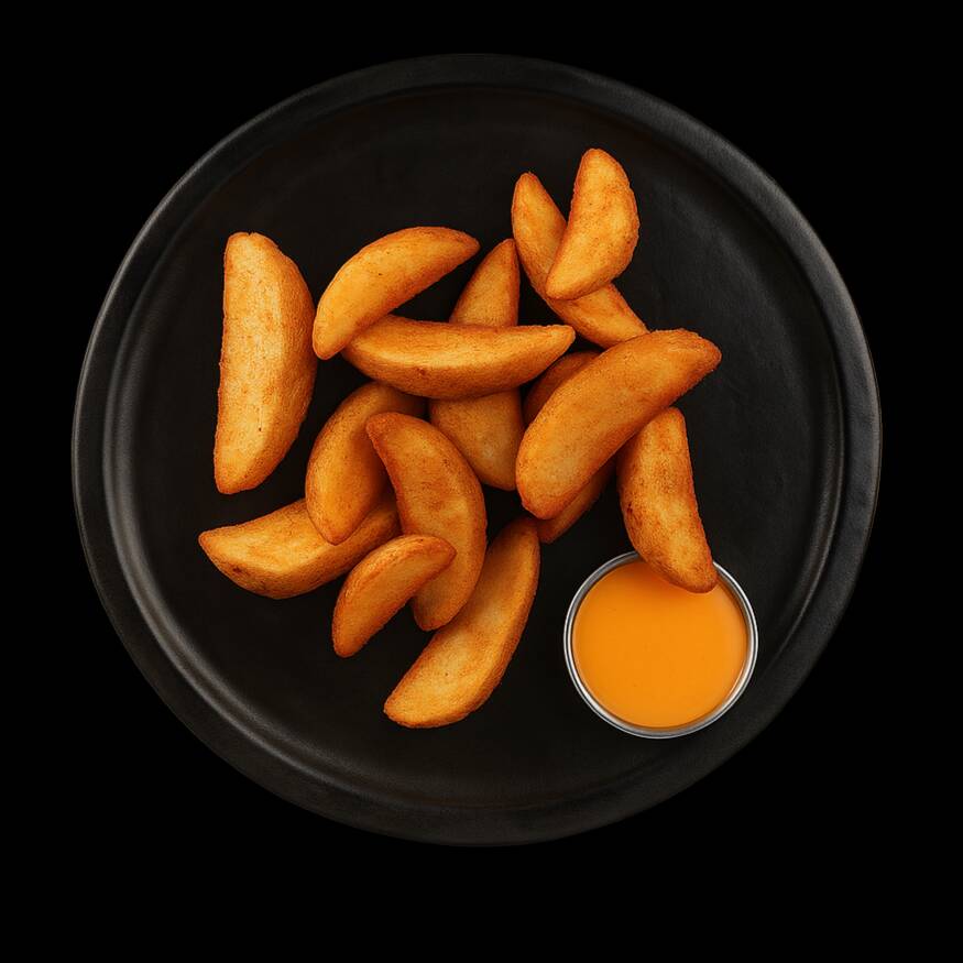 Papas fritas corte gajo (250gr) , incluye catsup, salsa picante y queso amarillo líquido.