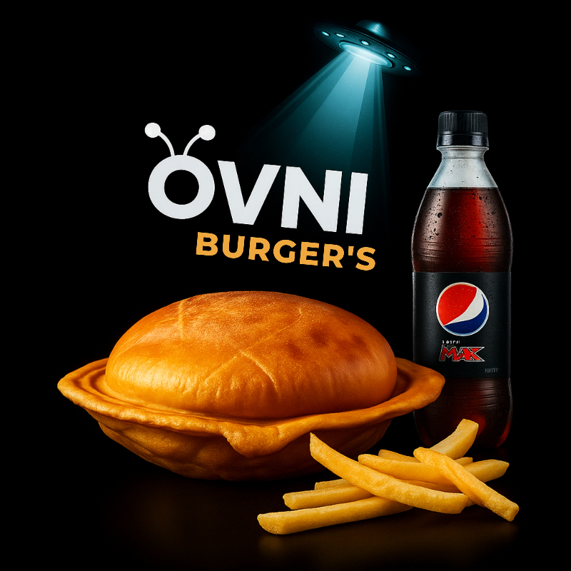 Deliciosa hamburguesa encapsulada en forma de ovni con pan brioche, carne de res artesanal un cuarto de libra, queso americano, pepinillos, cebolla, mayonesa catsup y mostaza.