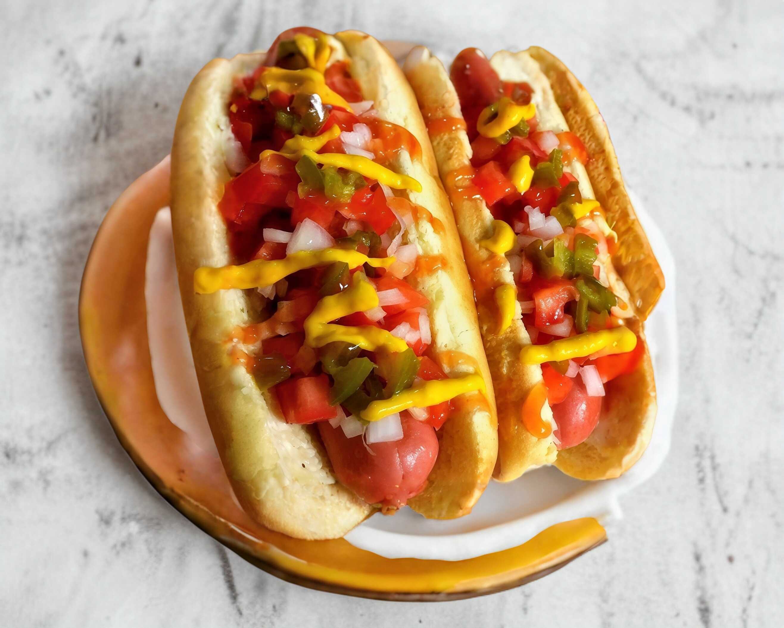 salchicha especial frankfurt jumbo, jitomate, cebolla, chiles, lechuga, mayonesa, catsup, mostaza.