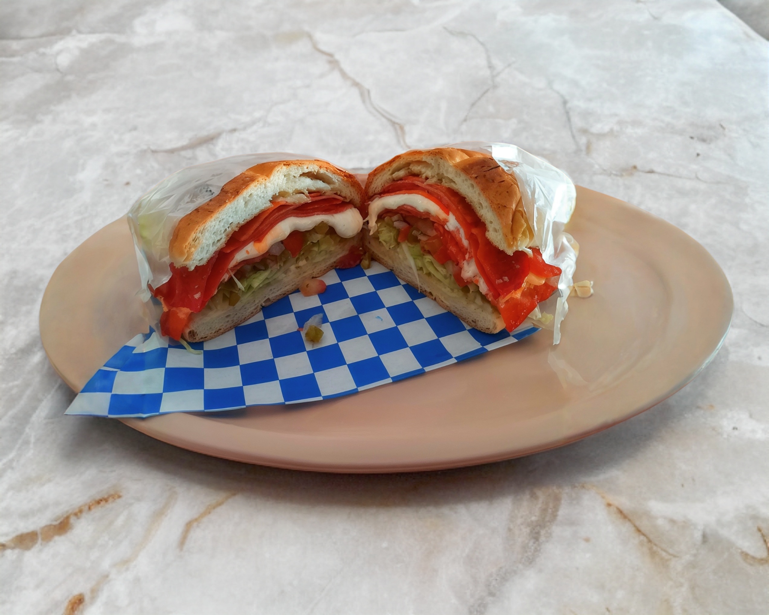 220 gramos de salchicha frita, lechuga, jitomate, cebolla, chiles, mayonesa, aguacate, sobre una capa de frijoles refritos en nuestra telera especial hecha en casa y una porcion de nuestra salsa casera.
