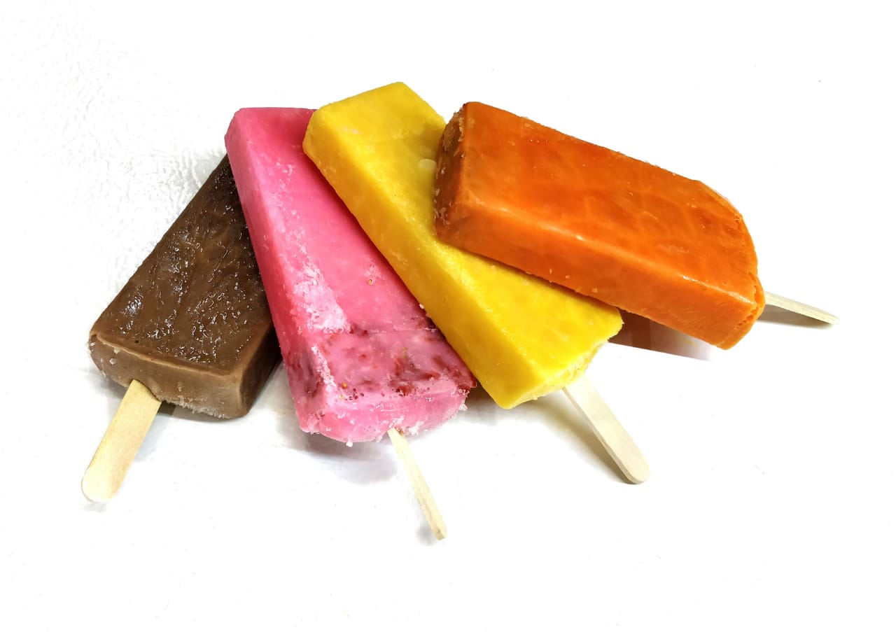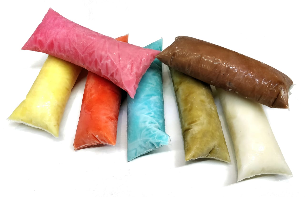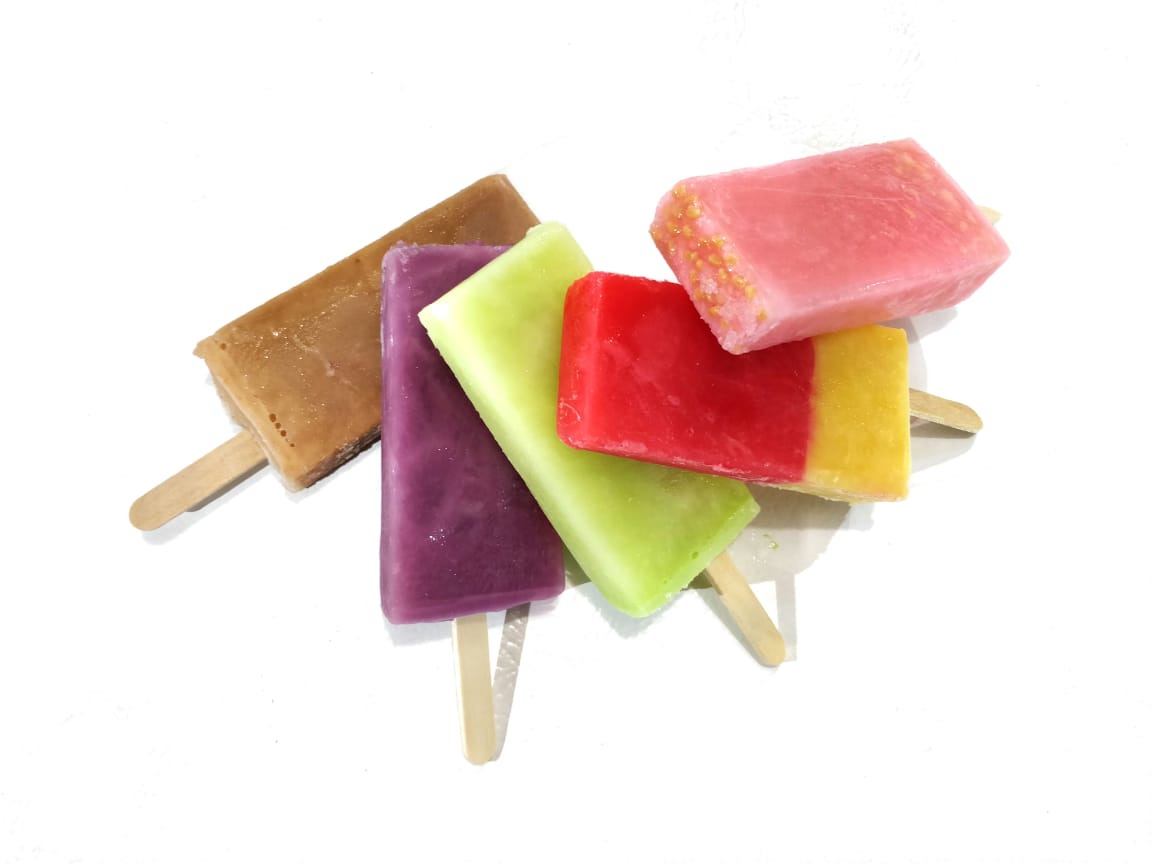 Limón, arroz, uva, combinada, guayaba, tamarindo, nanche, gaspacho, piña, mango con chile, grosella, guayaba, guanabana y panditas