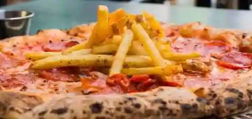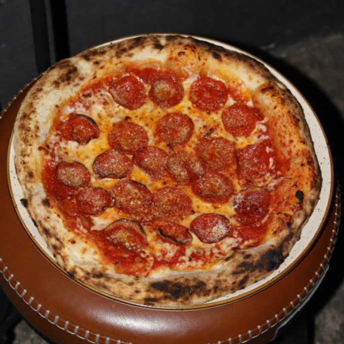 Pomodoro, pepperoni, mozzarella y toque de parmesano.