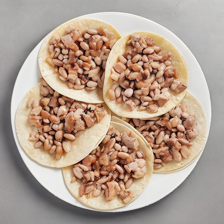 Chuleta, jamón, piña, queso y tres tortillas de harina.