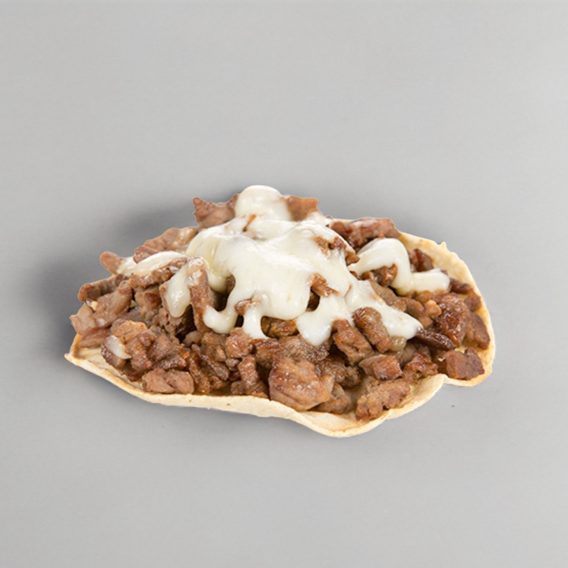 Carne al pastor, queso americano, aguacate, jitomate y cebolla