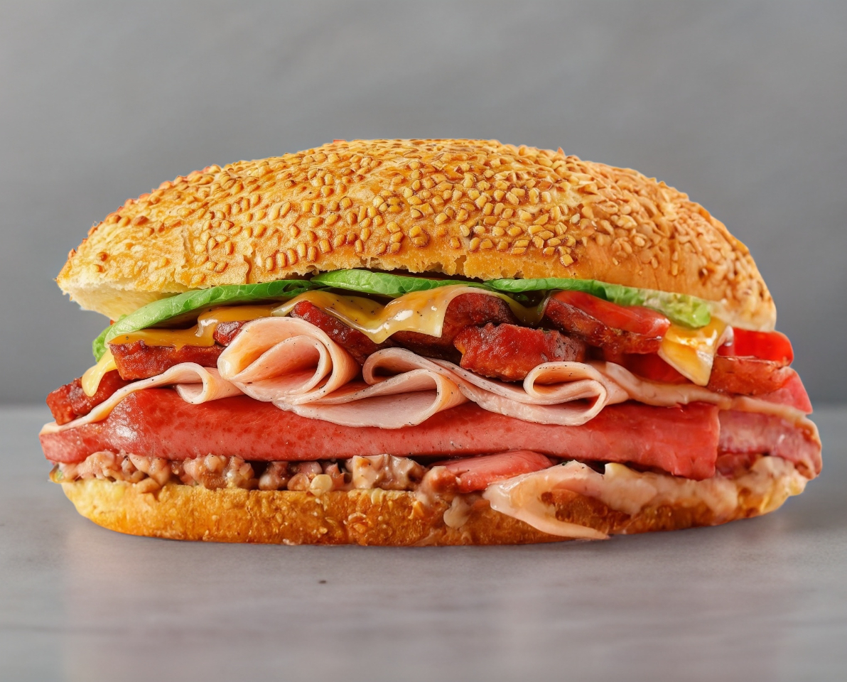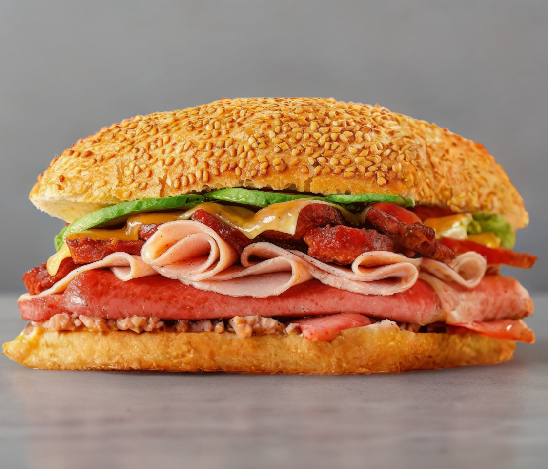 Chuleta, morrón, cebolla, tocino, jamón y queso.