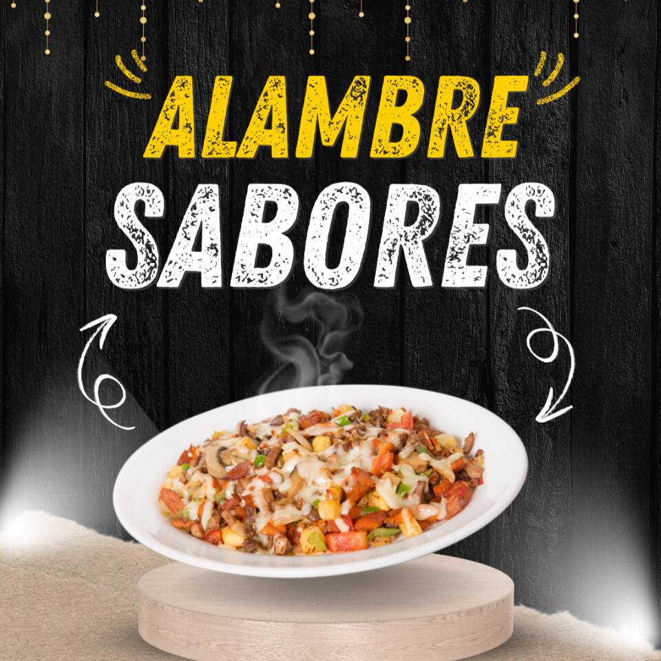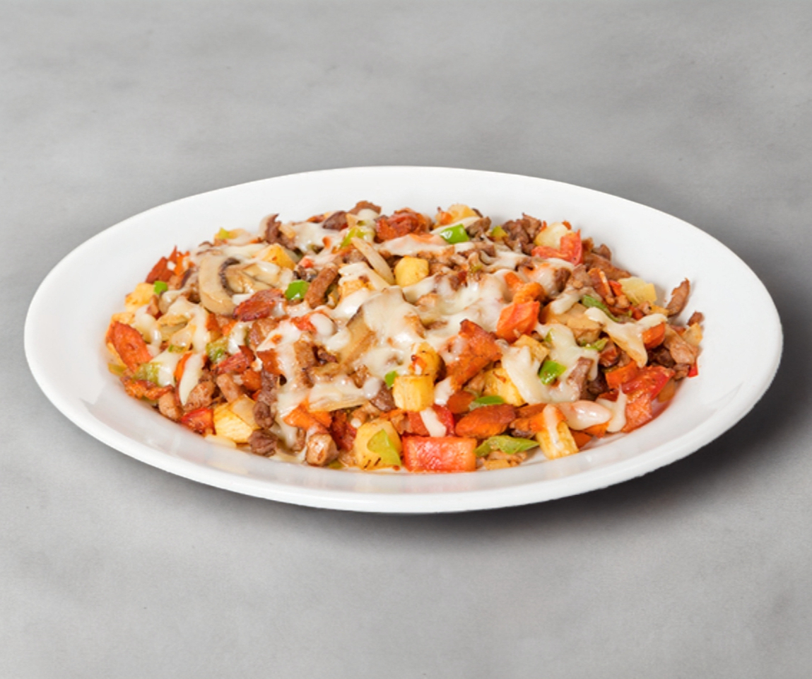 Bistec, chuleta, pastor, chorizo, tocino, jamón, piña, aguacate y queso.