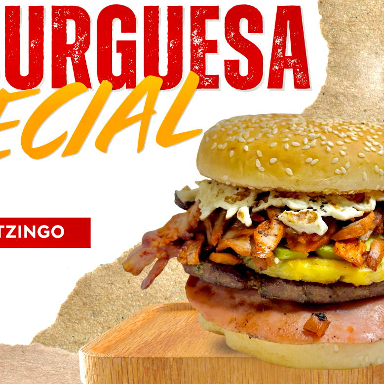 Carne de res natural, piña, jamón, tocino, queso americano, jitomate, aguacate y cebolla