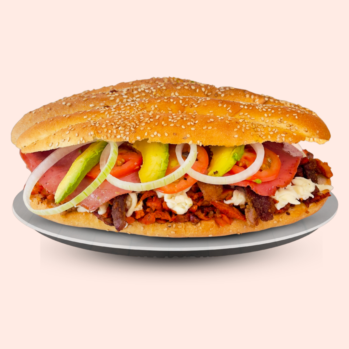 Chuleta, chorizo, pastor, tocino, jamón y queso.