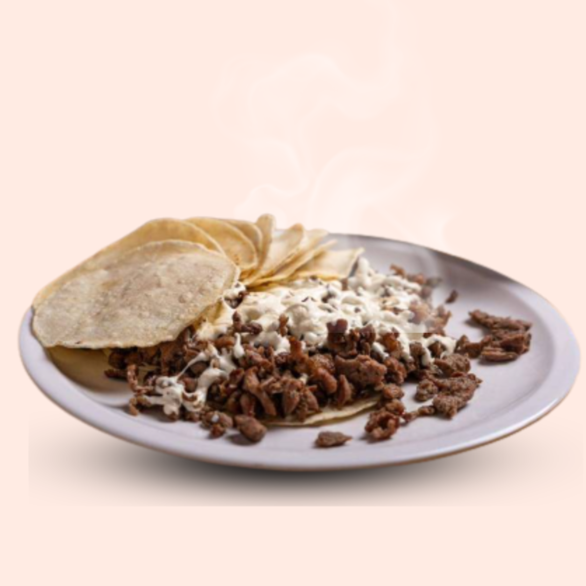 Carne de res natural, queso americano, aguacate, jitomate y cebolla