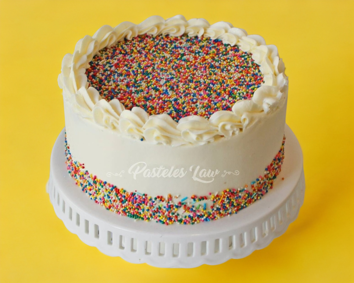 Delicioso pastel Arcoiris relleno y cubierto de frosting de queso crema