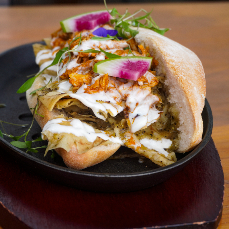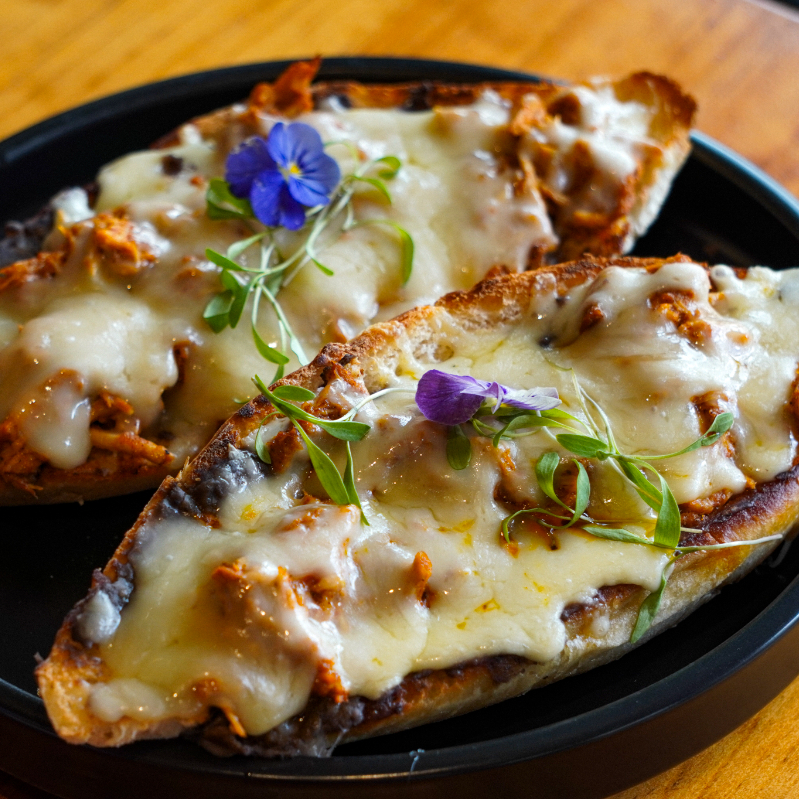 Pan artesanal con deliciosos frijolesl, queso gratinado y su respectiva cochinita pibil. Incluye pico de gallo