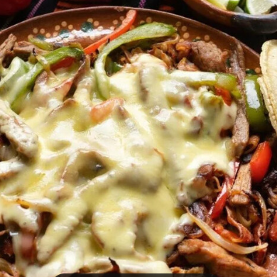 Disfruta de nuestro delicioso alambre, preparado con bistec, queso de pizza, cebolla y morrón, acompañado de salsa verde taquera, tortillas