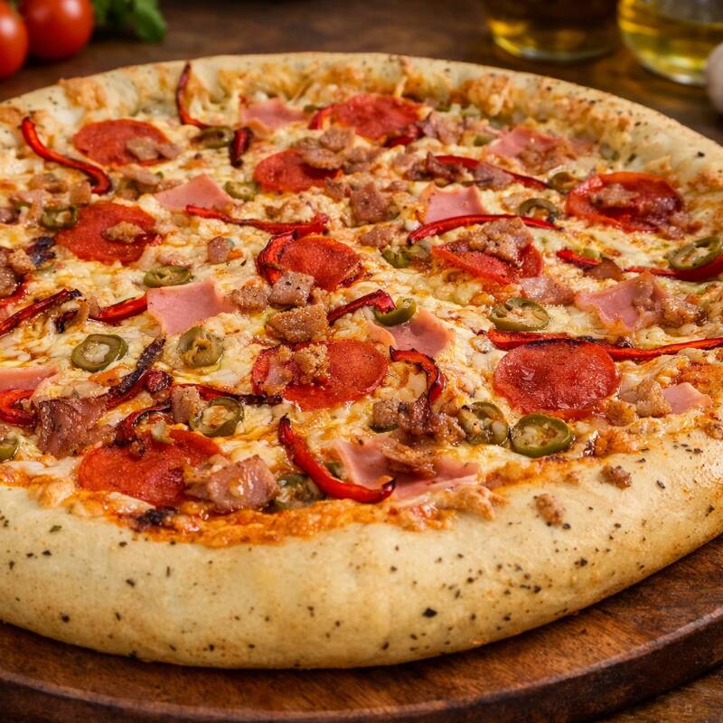 cualquier especialidad hawaina,pepperoni,italiana,champiñones,carnes,pastor,alambre,quesos,mexicana, vegetariana, di mare.