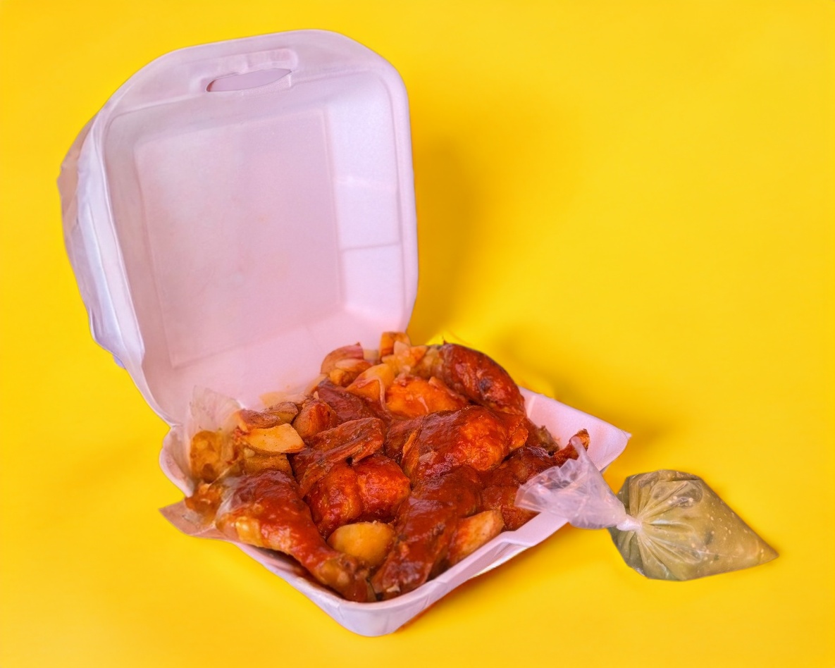 elige entre una rikisima sopa fria o arroz para acompañar tu delicioso pollo
