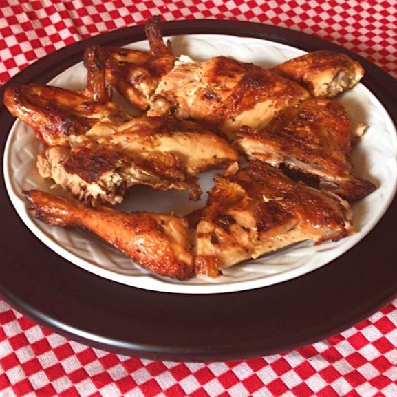 1 Pollo Mediano asado al carbón. En caso de agregar a su orden salsa feroz, esta se aplicara al pollo, no llega en recipiente.