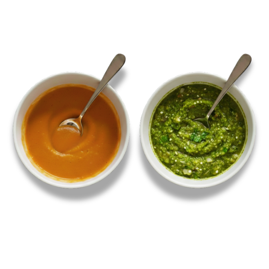Salsas de la casa, elaboradas con ingredientes frescos y especias, con el equilibrio ideal de sabor y picante para acompañar tu pollo y complementos.