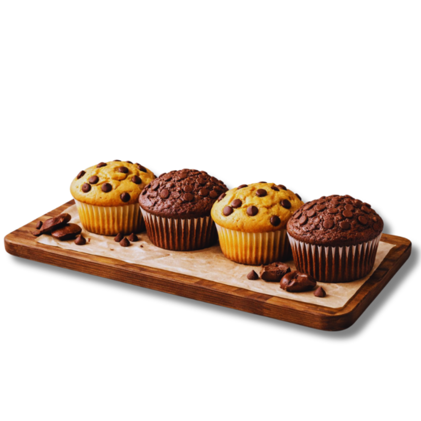 Muffin dulce de tamaño individual, suave y ligeramente esponjoso. Práctico y listo para disfrutar en cualquier momento.