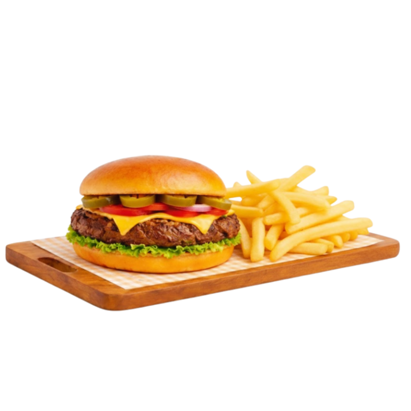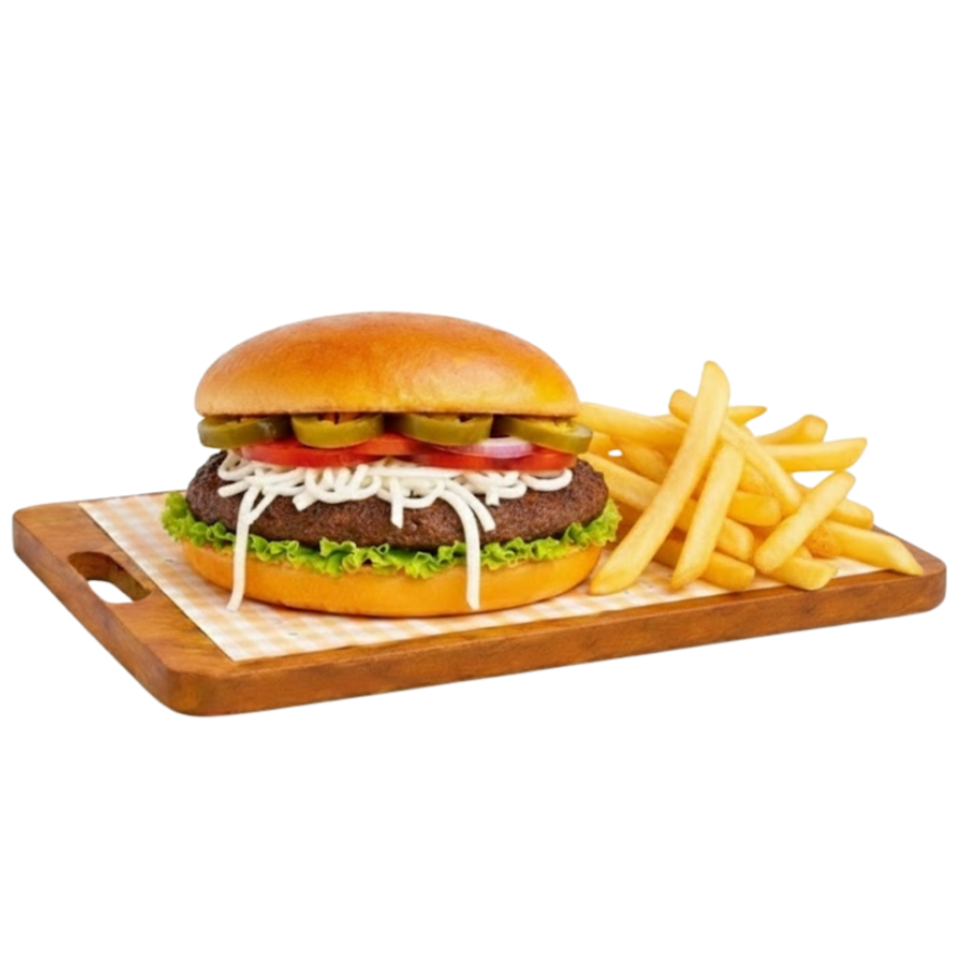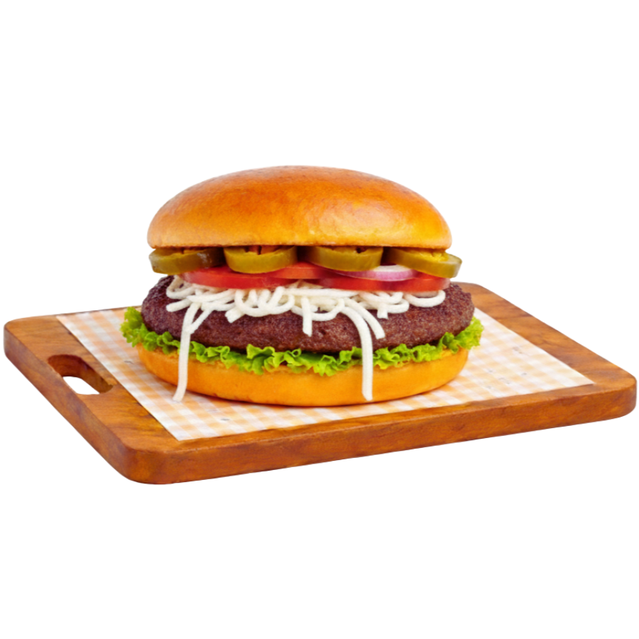 Disfruta de una jugosa hamburguesa de res, preparada al momento.