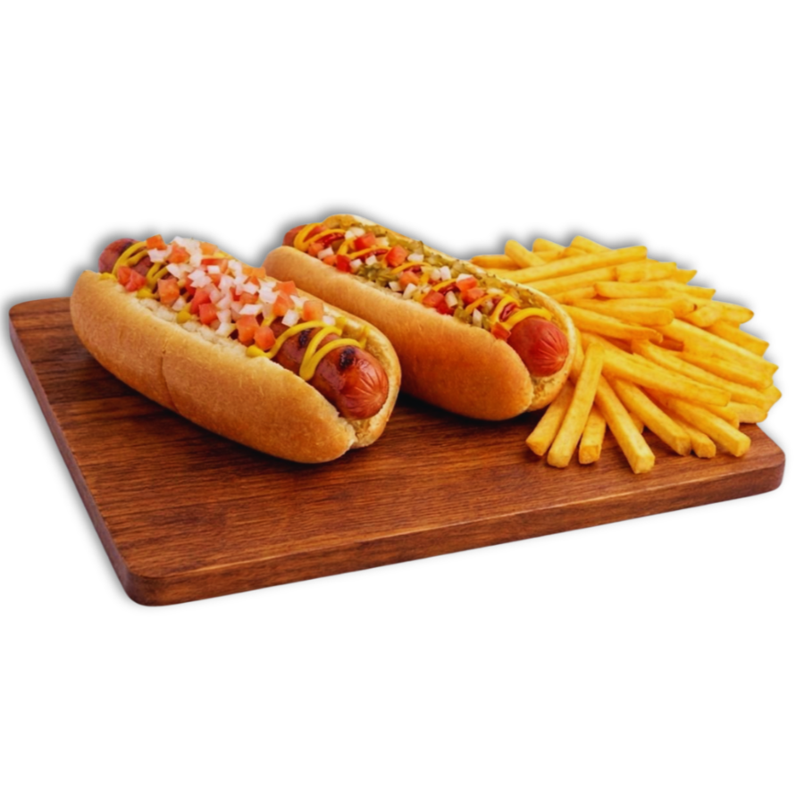 Disfruta de dos deliciosos hot dogs tamaño regular, preparados al momento con salchicha de pavo, servidos en pan suave y calientito.