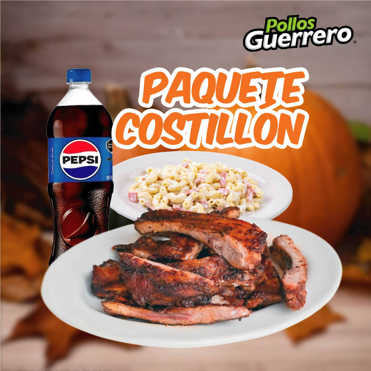 1 Pieza de Costillón Rostizada, bañada en sabor + 1 Guarnición de 350 g + 1 Refresco de 1.5 L