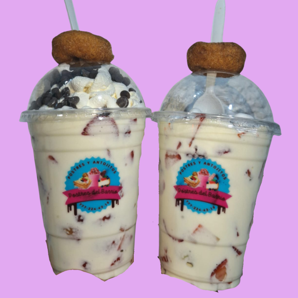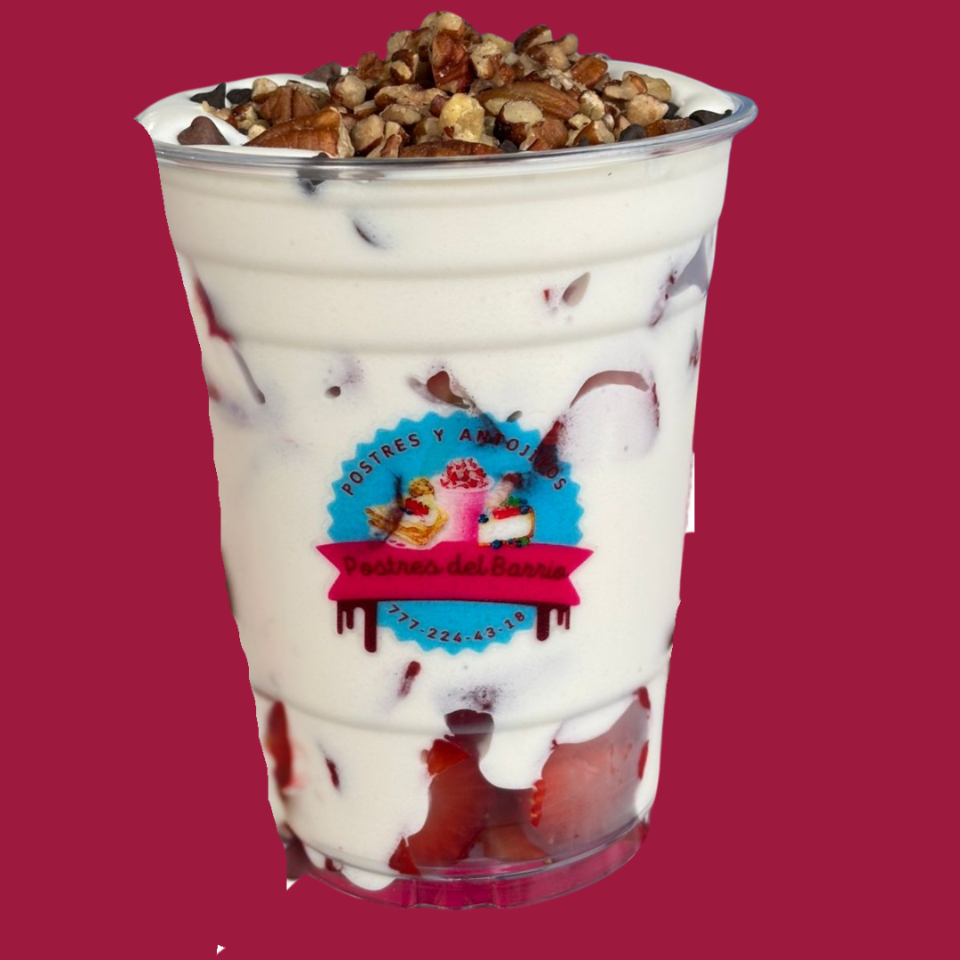 Vaso de fresas frescas mezclada con nuestra especial crema tamaño medianas de 478 mL