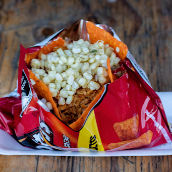 Doritos con esquite, preparado con mayonesa, queso amarillo y rayado y chile en polvo o salsa.