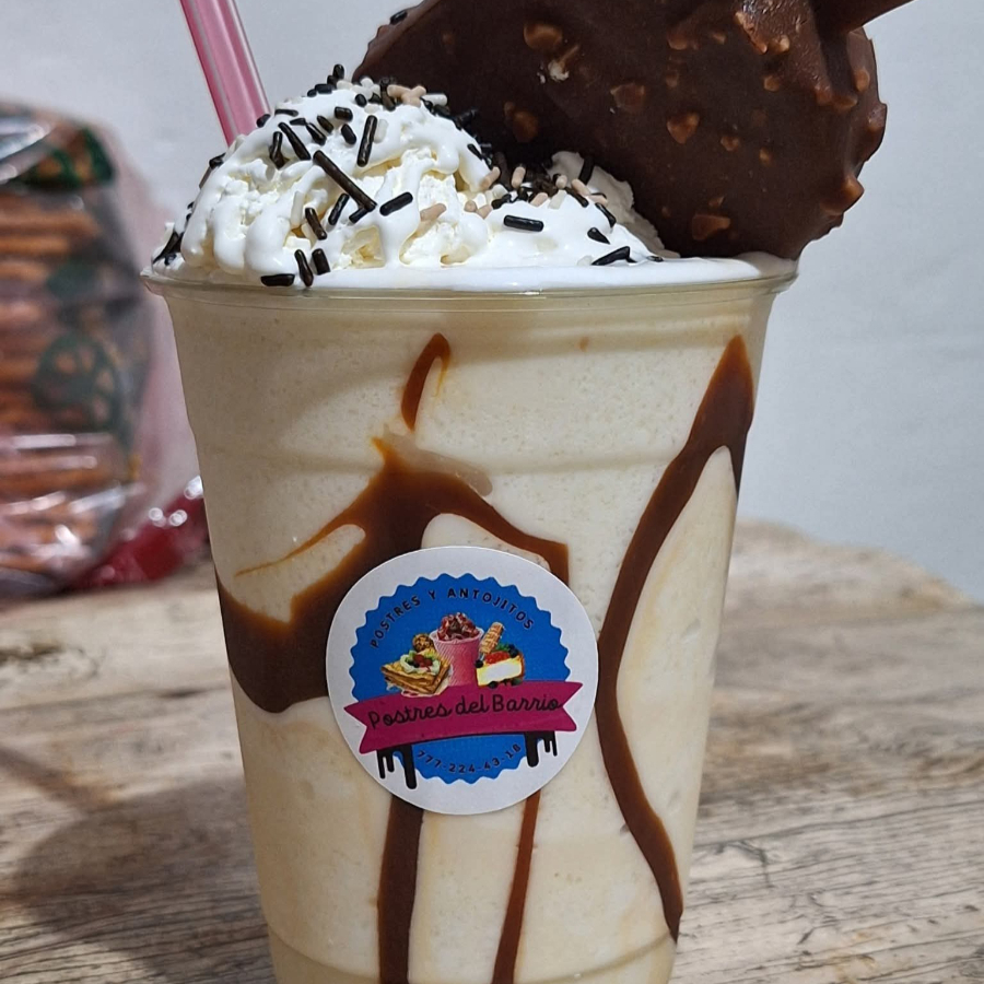 Bebida fría de 16 oz (478 mL) sabor crema de cachuate y trozo del iconico mazapan