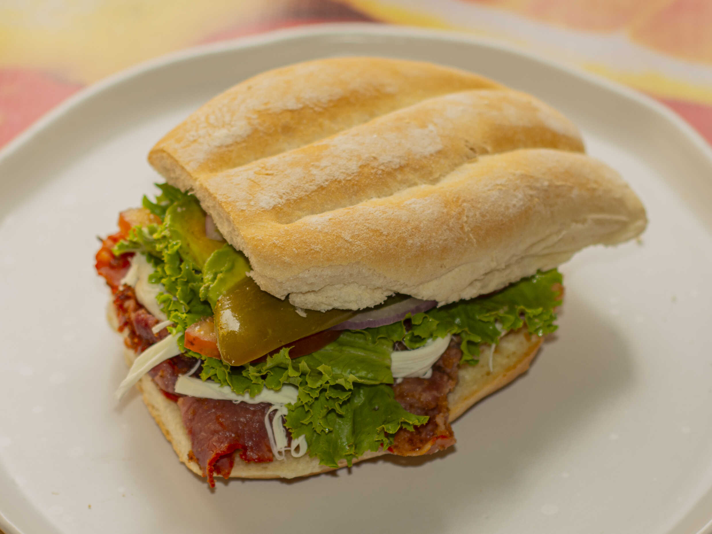 Preparado con jamón de pavo, queso blanco y queso amarillo.