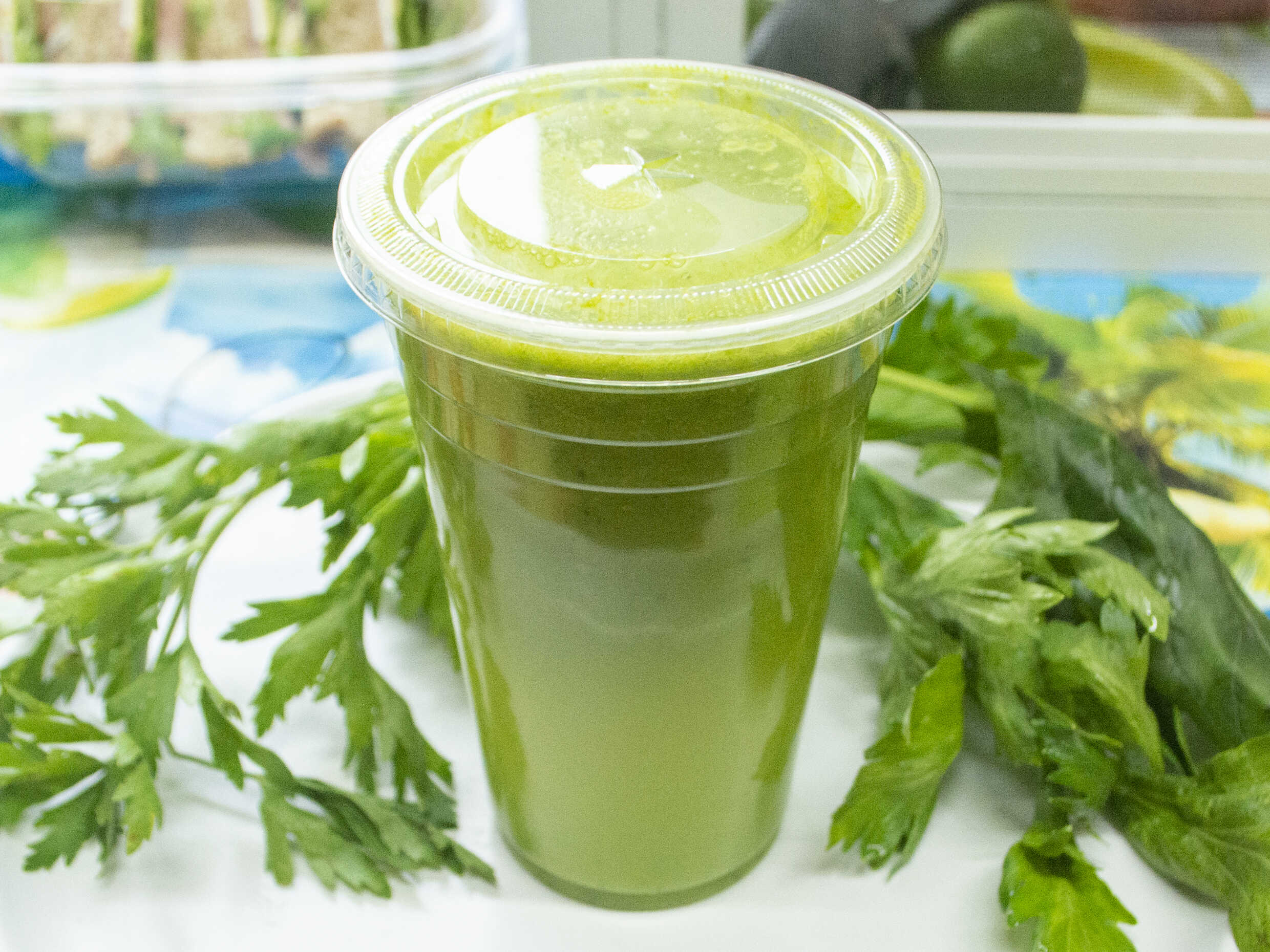 Preparado con apio, perejil, espinaca, nopal y piña. Tamaño a elegir.