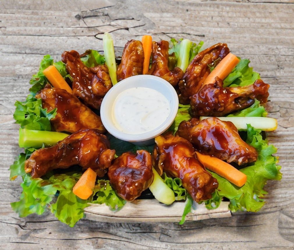 10 Pzas de alitas de pollo con salsa a elegir.