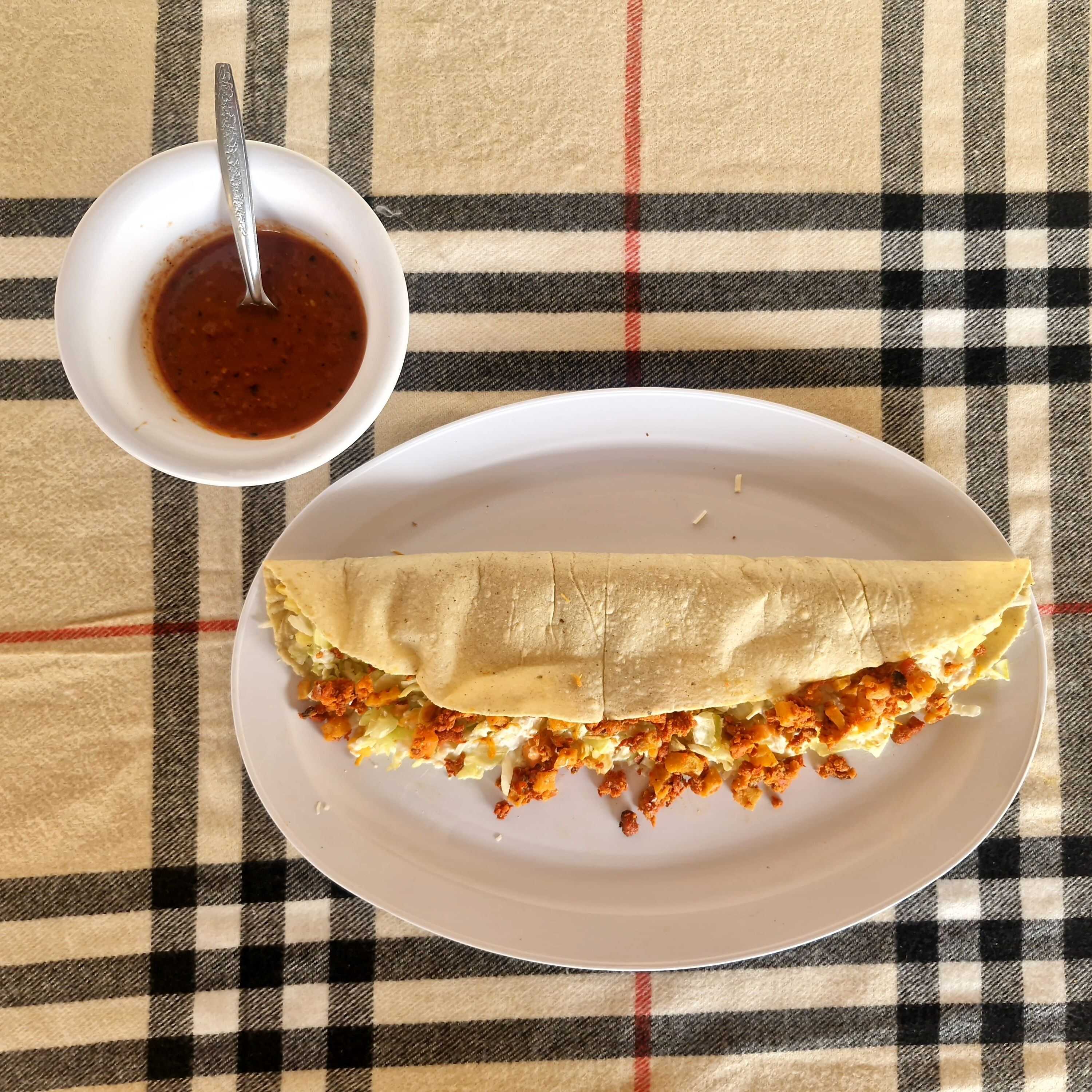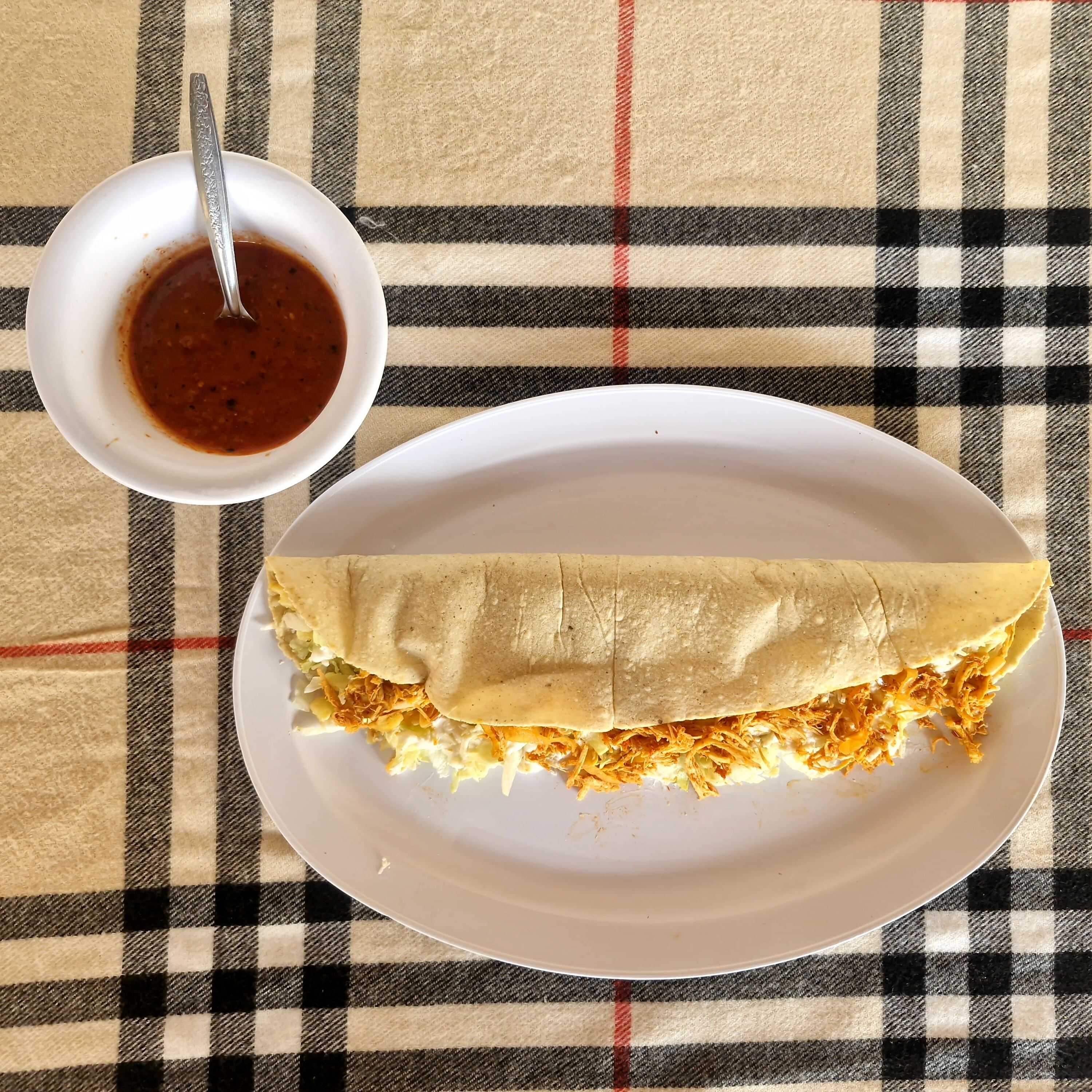 Gorda de chales gigante con crema, queso rayado, lechuga y salsa.