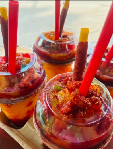 Chamoyada de fruta natural con trocitos de mango, miguelito, tajin y chamoy (600 ml).