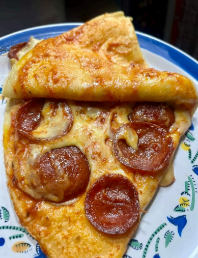 Crepa sazonada y preparada con salsa casera de pizza, ingredientes a elegir, base de queso mozzarella y masa artesanal.