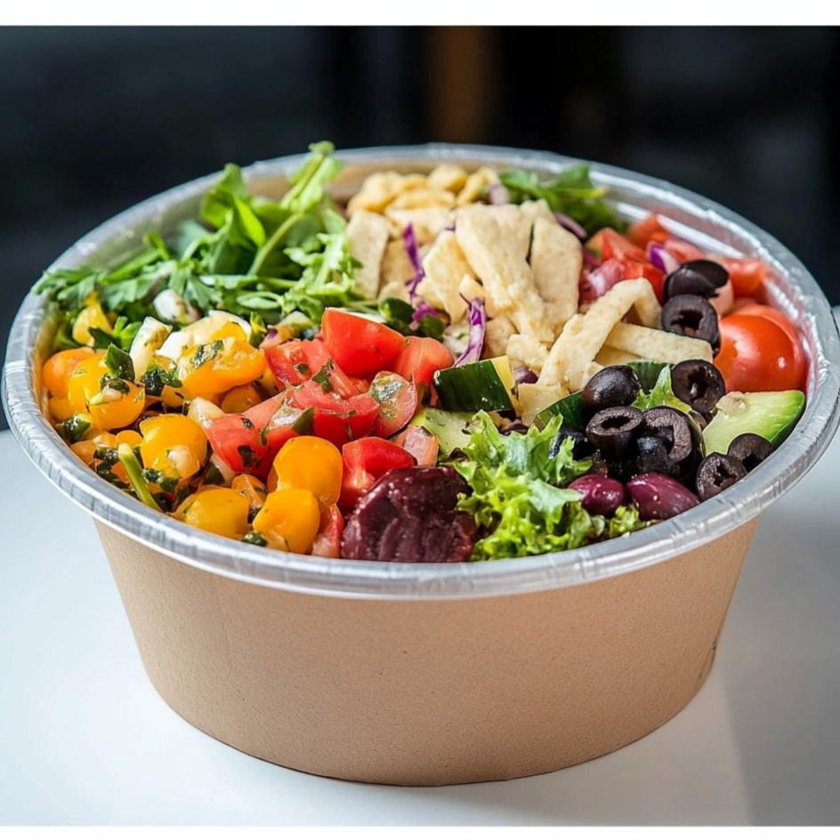 Se Sirve Con: Lechuga. (5 Vegetales, 1 Pasta, 3 Proteína, 3 Crocantes, 3 Quesos, 3 Aderezos).