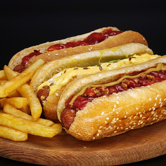 HOT DOGS CON PAPAS 2 PZAS AL CARBON