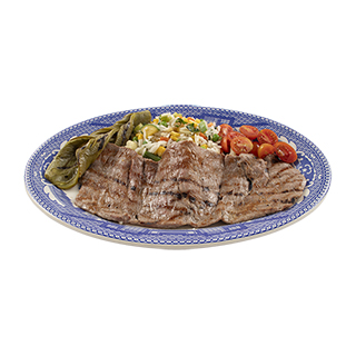 Comal de Fajitas de arrachera con pimiento morrón rojo y verde, guacamole y chiles toreados 150 g
