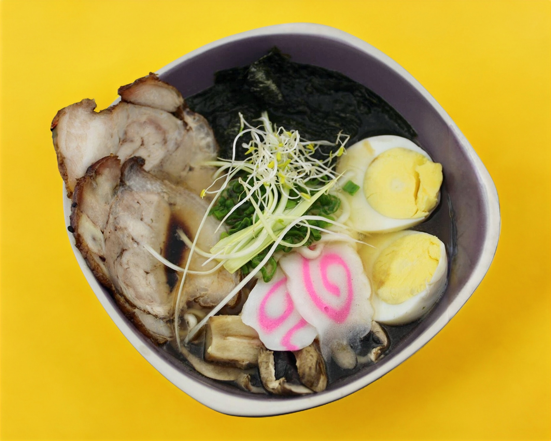 Sopa especial de la casa, ramen, huevo, Naruto, chashu, nori y hongos shitake.