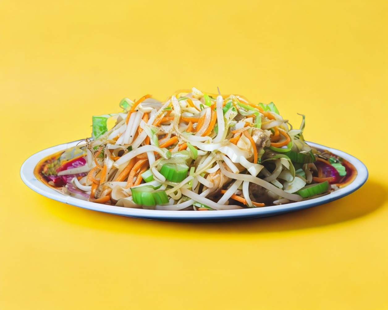 Germinado de soya salteada con zanahoria, cebolla y apio al estilo chino.