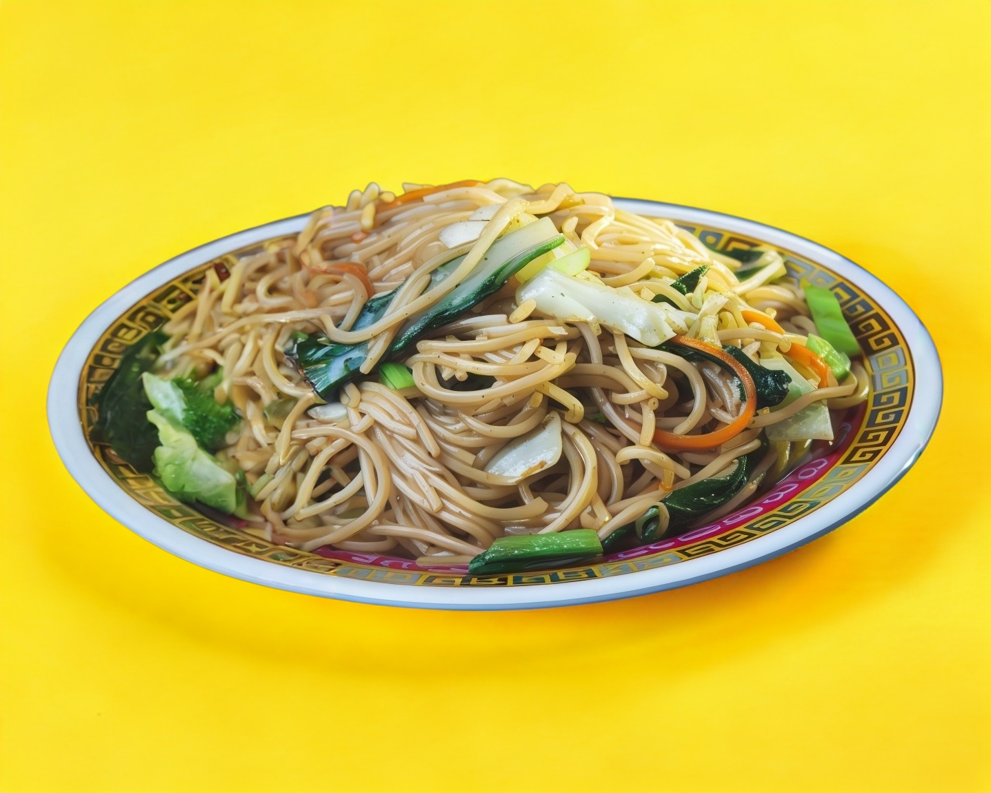 Tallarines con verduras al estilo chino, zanahoria, calabaza y col.