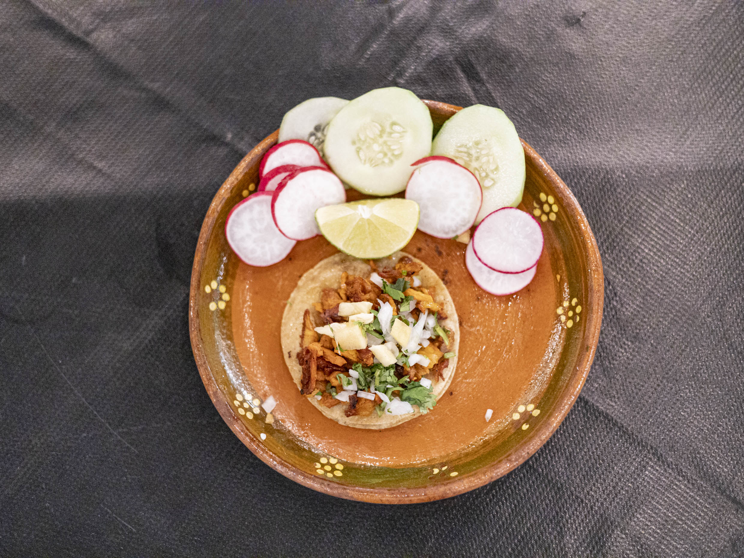 Bistec, tocno, pastor, costilla, longaniza, champiñon, morrón, cebolla, piña, jamon, aguacate y queso.