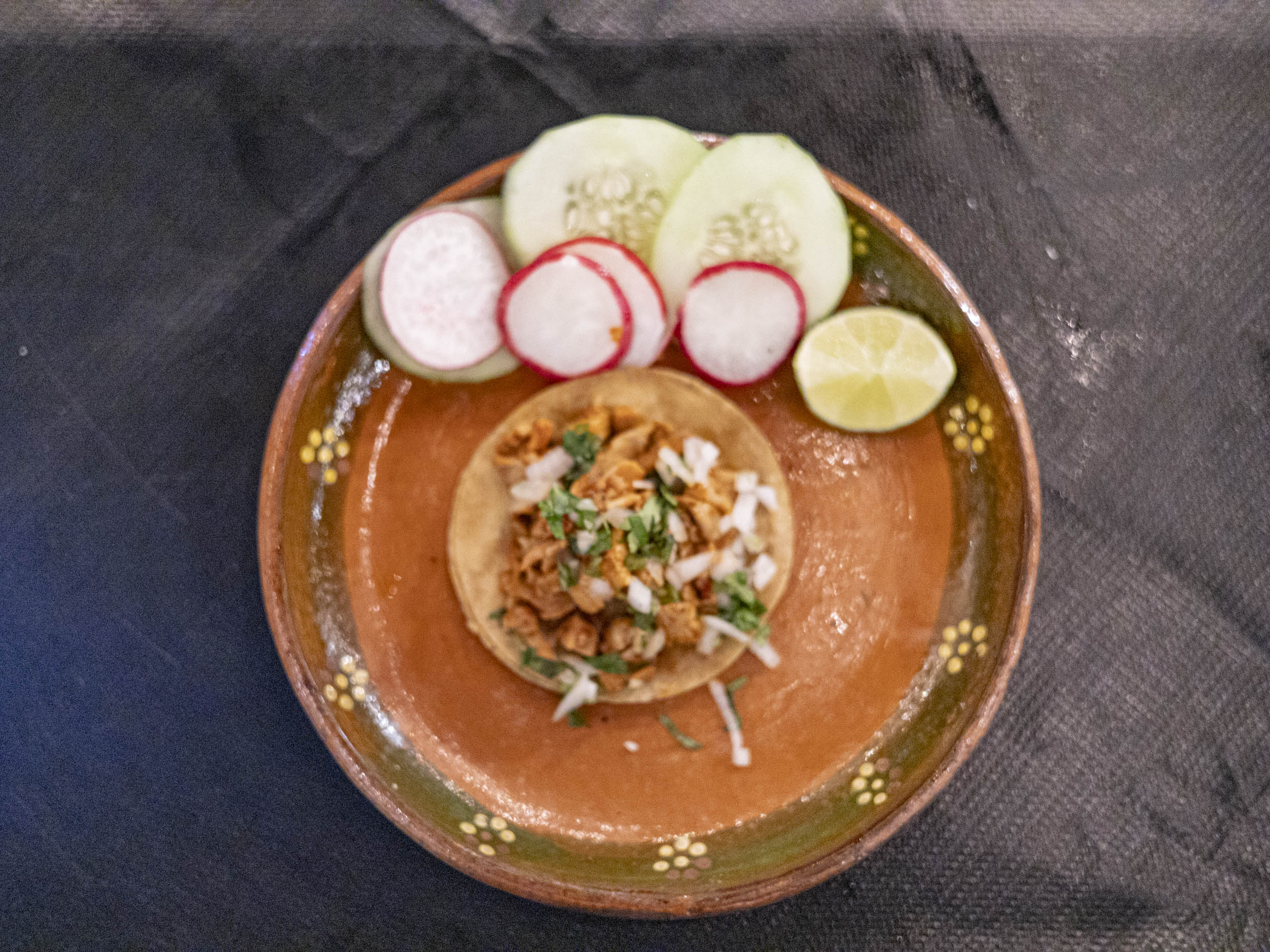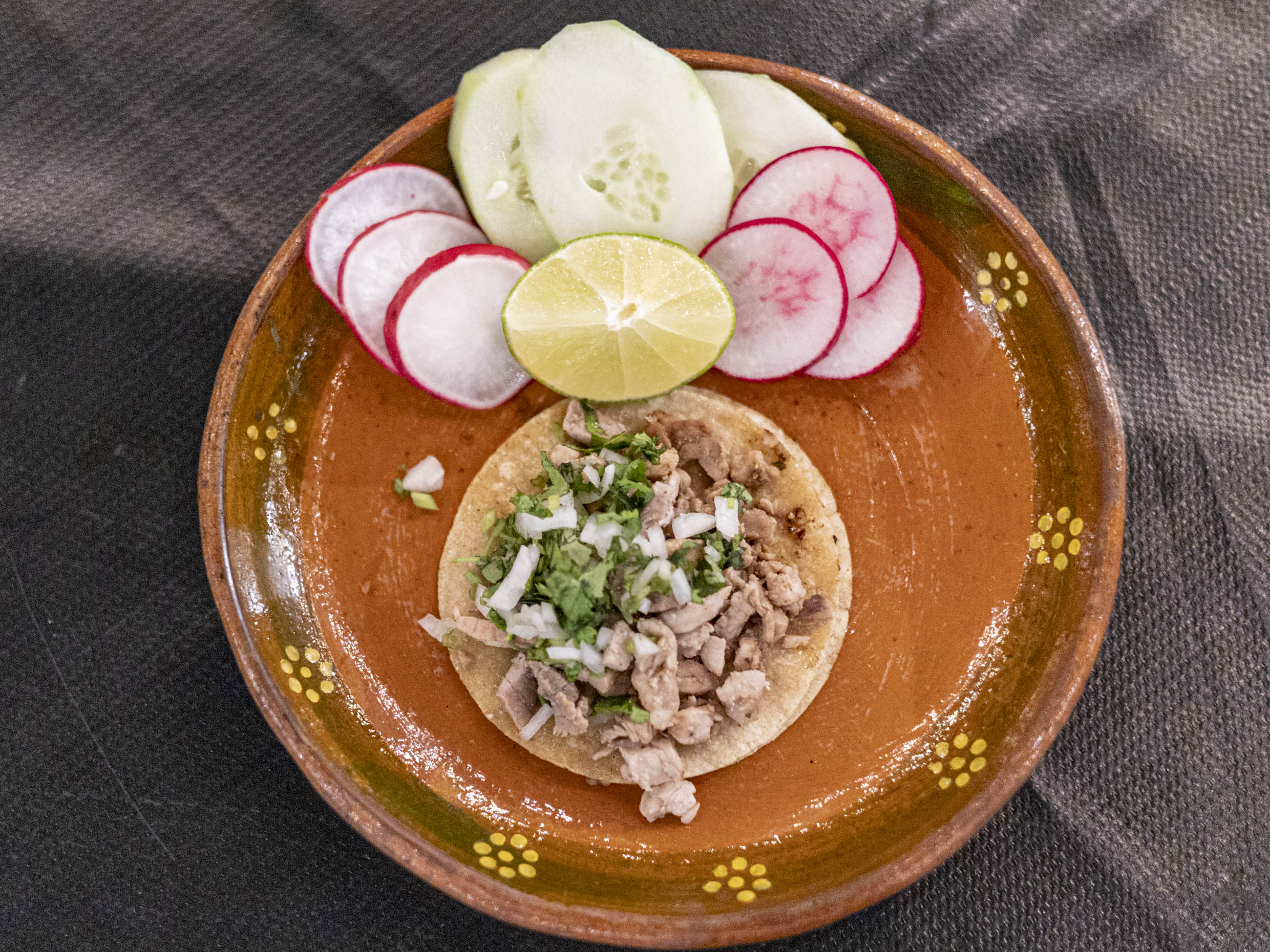 Bistec, pastor, morrón, cebolla, jitomate y queso.