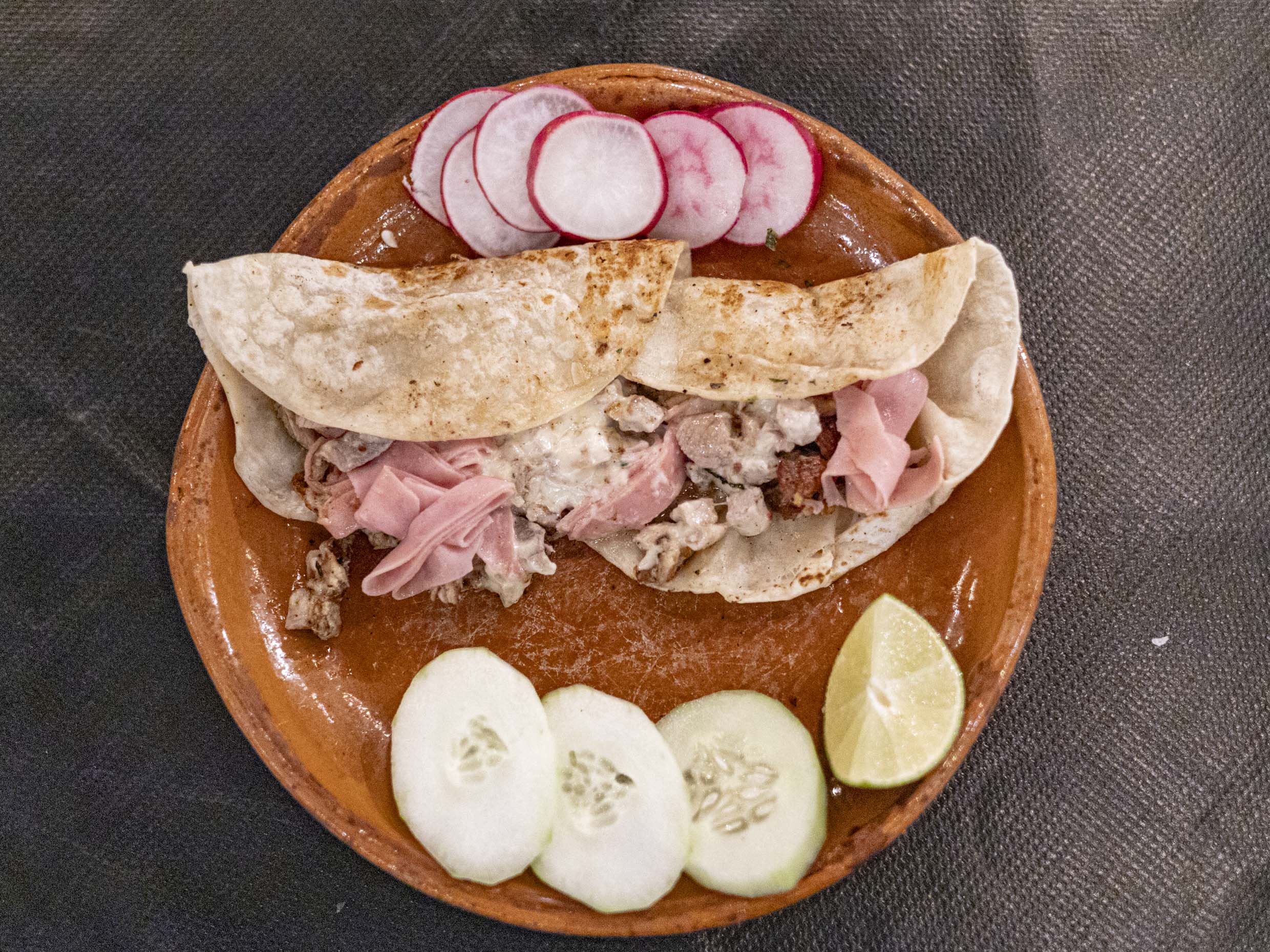 Lleva 5 quesadillas, frijoles, nopales, chiles toreados, cebollitas